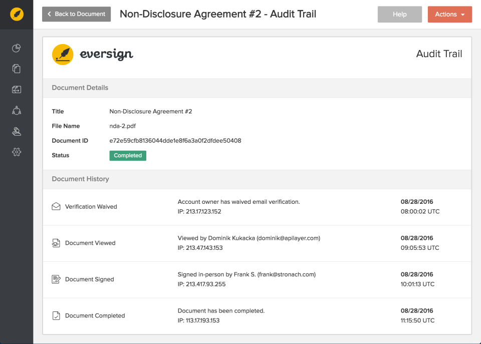 The idea behind eversign is helping both small and large businesses make the digital leap while guiding them every step of the way. We truly understand that a great deal of companies hesitate when it comes to managing and processing sensitive data such as contracts and business agreements in the cloud which is why we dedicated ourselves to building a highly secure and well monitored e-Signature platform that is ahead of its time in terms of functionality, while remaining affordable.