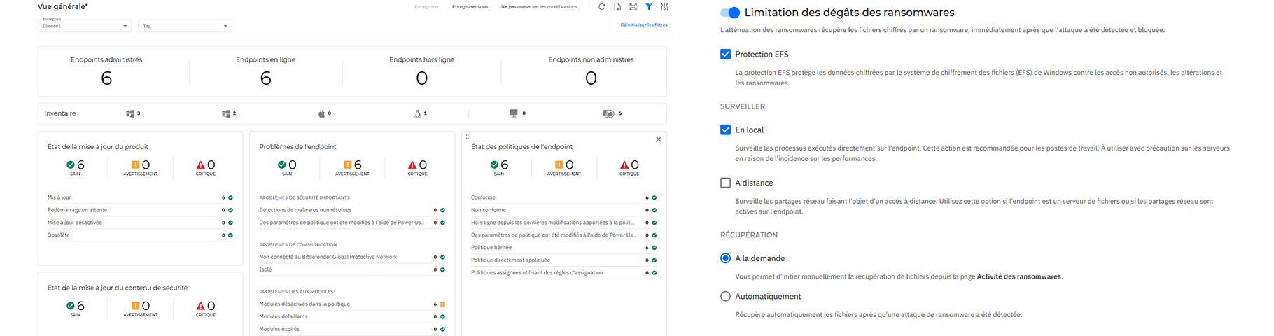 RG System Suite's Cybersecurity module is the solution for providing in-depth security for managed IT infrastructures. Thanks to the native integration of Bitdefender GravityZone technology (world leader in antivirus) and advanced detection bricks (EDR, ATS, MDR), you benefit from powerful, centralised and automated protection.