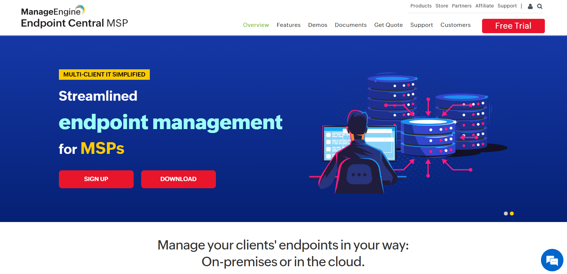 ManageEngine Endpoint Central MSP is an award-winning remote monitoring and management software, RMM software, that helps managed service providers (MSPs) to efficiently manage their clients' desktops, servers, laptops, and mobile devices from a central location. It is suitable for small, medium, as well as large MSPs.