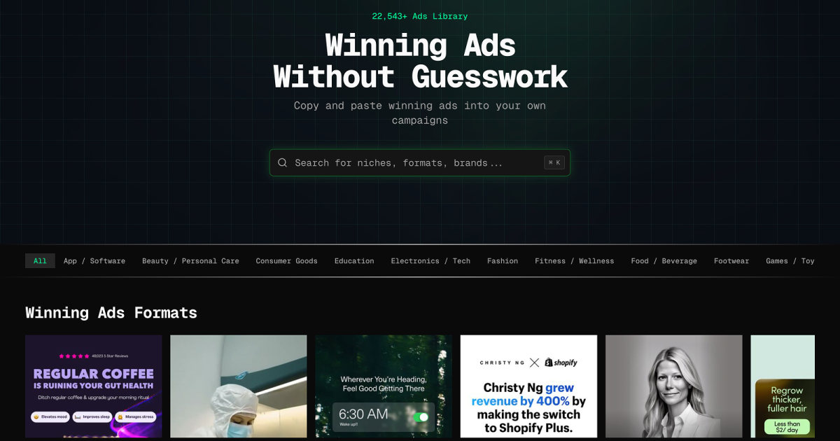 Ad Swipe File : Create top creatives: free access to 22,423+ proven ads!