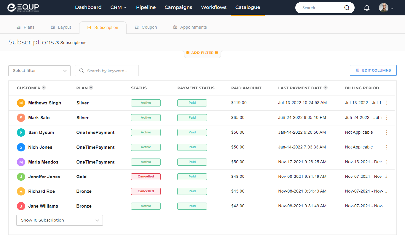 Whether you are in the Service, SAAS, or E-commerce industry, EQUP has got you covered. With its comprehensive suite of features that includes marketing, sales, billing, communication and more, managing your business has never been easier.