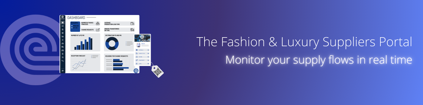 The e-SCM supplier portal enables you to coordinate supplies for a wide range of products: ready-to-wear, men's, women's, children's, leather goods, luggage, eyewear, jewellery, decoration, furniture, etc. e-SCM is a supply chain management solution dedicated to the Fashion & Luxury Goods industry, designed to optimise supply chain management from order to delivery, while ensuring product conformity and time-to-market. It ensures the traceability of exchanges between all the players in a supply chain and the management of monitoring milestones throughout the cycle.