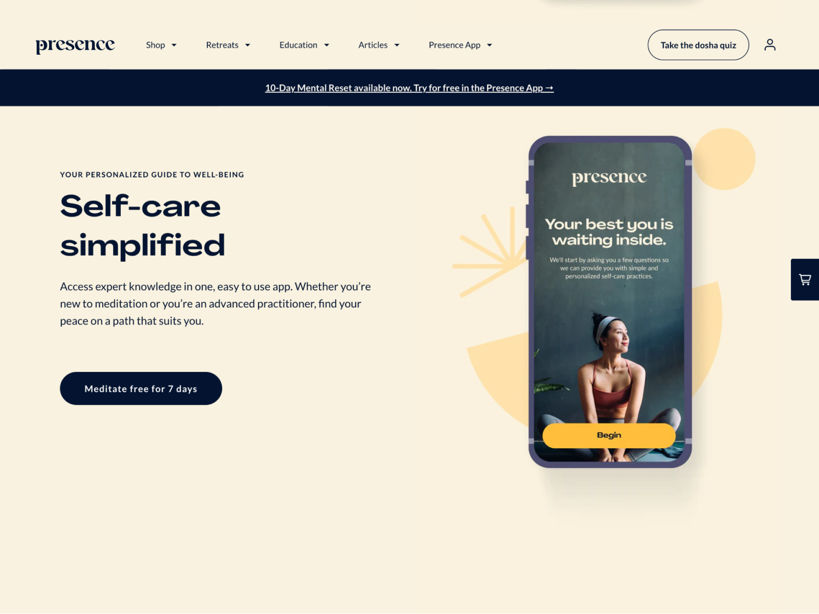 All content is based on research and developed by experts in meditation, Ayurveda, and wellness, making Presence a trustworthy companion in your journey to peace.